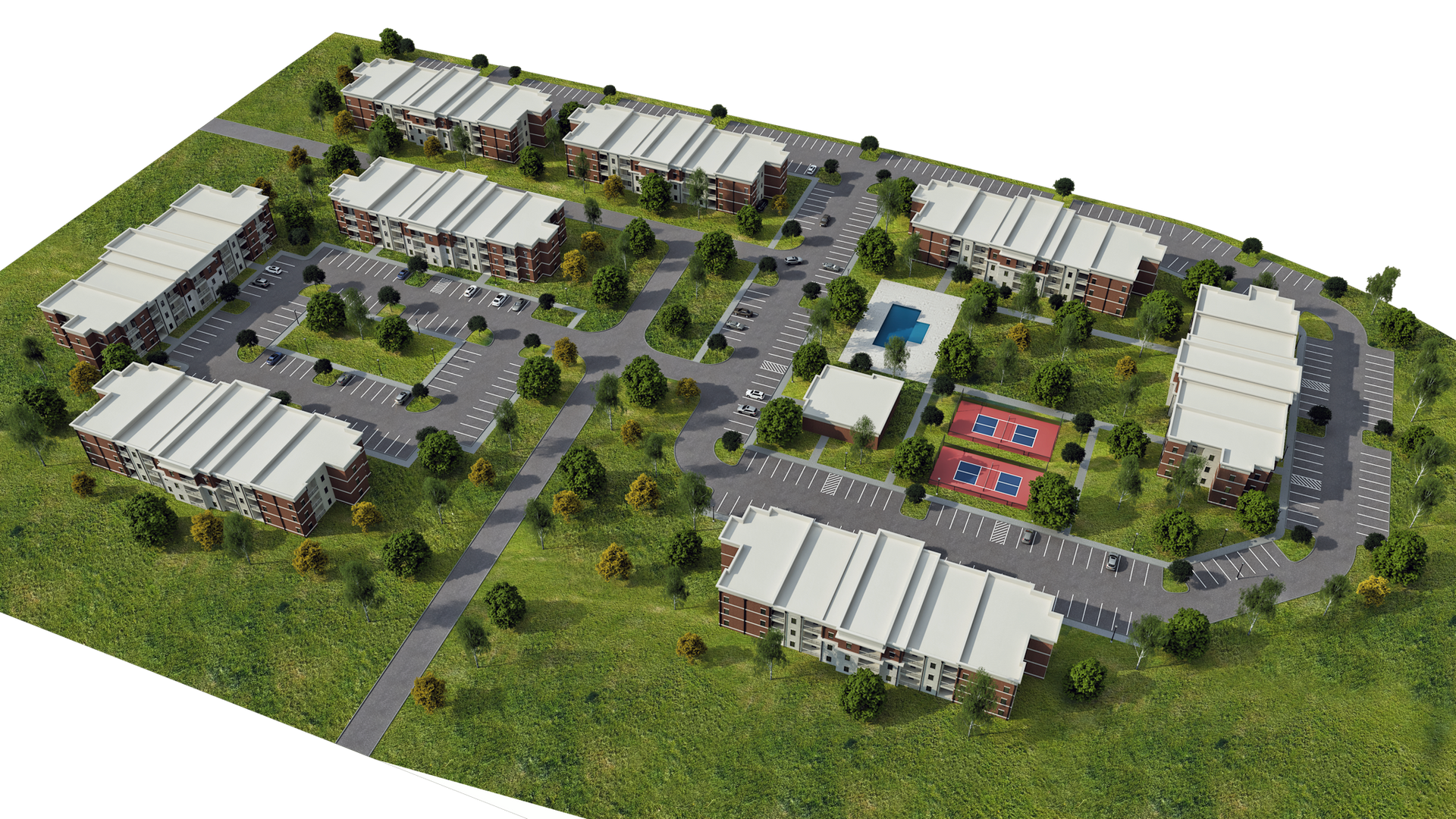 - The Property is expected to offer one-bedroom, two-bedroom, and three-bedroom units across eight buildings and a 3,500 square foot amenity center.
